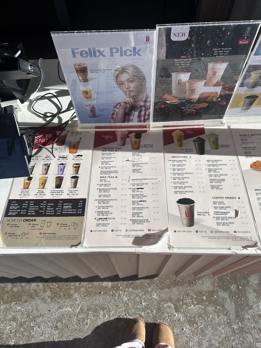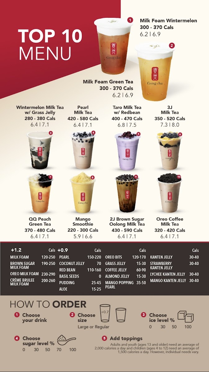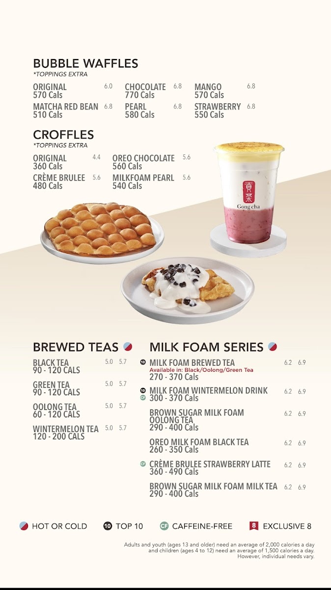 Gong Cha Dundas offers a diverse and enticing menu, perfect for any bubble tea lover. Their Biscoff Series stands out with options like Biscoff Milk Tea W/Milk Foam (HOT) and Biscoff Milk Tea Smoothie W/Milk Foam. For something more indulgent, try the Felix Picks collection, featuring fan favorites like Brown Sugar Milk Tea/W Pearl and Taro Milk Tea/W Pearl. The Top 10 menu includes classics such as Pearl Milk Tea, 3J Milk Tea, and Mango Smoothie, while the Exclusive 8 selection offers unique drinks like Mango Milk Tea W/Mango Katen Jelly and Strawberry Oreo Milk Foam Milk Tea. If you're in the mood for something more creamy, the Milk Tea section has options like Brown Sugar Oolong Milk Tea With 2J and Wintermelon Milk Tea With Grass Jelly. For fruit tea enthusiasts, the Creative Mix Fruit Tea section features refreshing drinks such as Lychee Oolong Tea and QQ Passionfruit Green Tea. Smoothie lovers can enjoy a range of fruity blends like Mango Smoothie, Taro Smoothie, and Passionfruit Smoothie. For those seeking dairy alternatives, the Oat Milk Series has offerings like Honey Oat Milk Tea and Brown Sugar Oat Milk Tea. Gong Cha also excels in indulgent milk foam drinks, with choices like Milk Foam Brewed Tea and Brown Sugar Milk Foam Oolong Tea. If you're in the mood for a little snack, their Croffles are a delightful treat, with options such as Original Croffle and Creme Brûlée Croffle. Whether you're craving a creamy milk tea, refreshing fruit drink, or a sweet treat, Gong Cha Dundas has something to satisfy every taste.